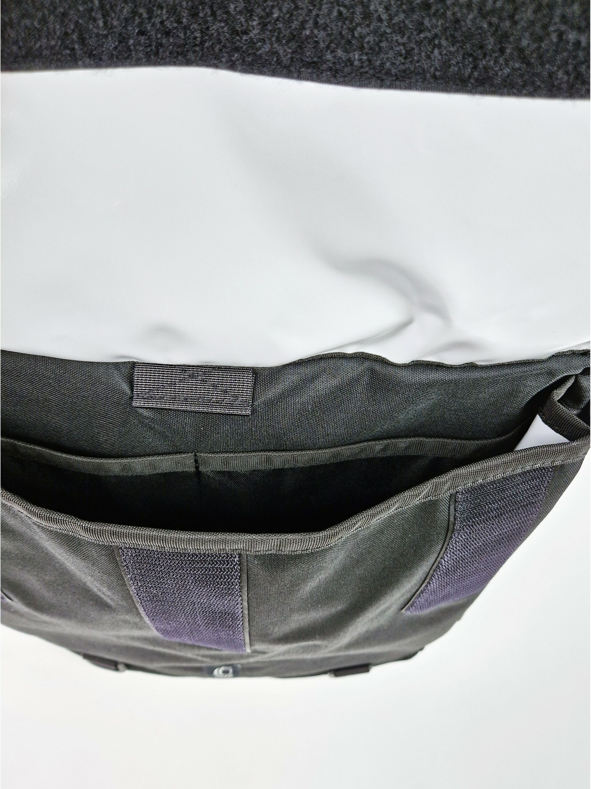 With its generous capacity, the BUGENDAI offers plenty of space for your delivery without feeling bulky. Six compression straps allow you to adjust its size effortlessly, making it adaptable for both heavy and light loads. On the outside, a large front pocket with a flap closure and two interior pockets provides quick access to frequently used items. For storing your water bottle or U-Lock the side pockets are perfect. Inside, a padded back pocket offers extra comfort and is perfect for paper work, while two additional interior pockets keep smaller items neatly organized.